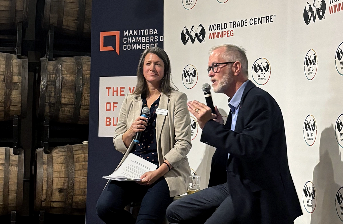 Le 22 octobre, M. Ranson a partagé son parcours entrepreneurial à la brasserie Kilter Brewing dans le cadre d’une séance WTC Talks, un événement commandité par North Forge et la Chambre de commerce du Manitoba. WTC Talks est un rendez-vous mensuel organisé par le World Trade Centre Winnipeg pour rassembler la communauté d’affaires et mettre de l’avant des témoignages liés au commerce et à la croissance économique.